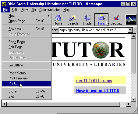 To print a Web page that is currently visible in your browser window: